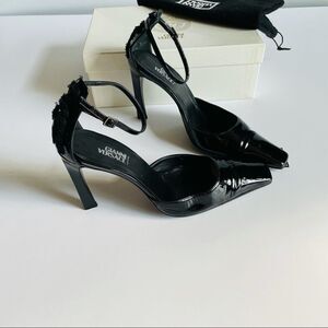 Authentic Gianni Versace evening black heels size 40 US size 9.5 comes with original Gianni Versace dust bag purchased in New York City Versace store Fifth Avenue only worn one time to a wedding Orig. Price $650.00