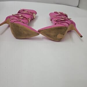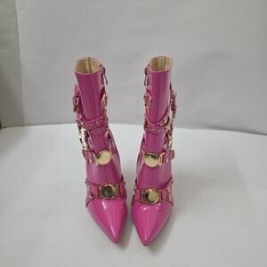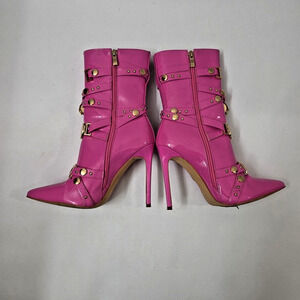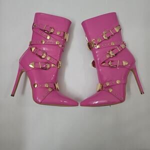 Y2K Azalea Wang Pink Studded Patent Vegan Leather Boots Glam Spike Heel Size 7.5