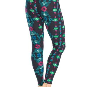 Y2K Aztec Neon Indie Art Print Leggings Stretch Pant Size S M L Pink Owl Apparel