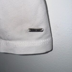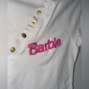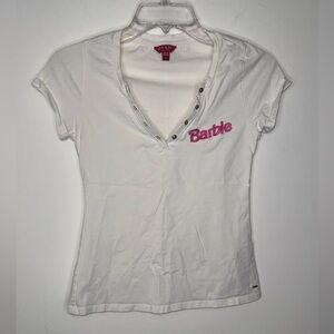 Y2K BARBIE Pink Embroidered Logo T Shirt GUESS white V Neck Sexy Cute EUC Small
