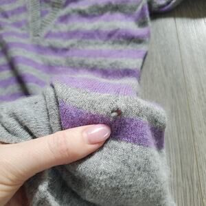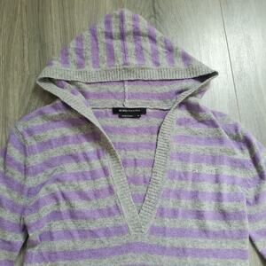 Y2K BCBG Hoodie Sweater Long Medium Purple Gray Stripe Angora Wool V Neck