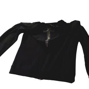 Y2K BCBG Hoodie Track Jacket Sz S Black Diamonds Luxe Lounge Preppy Goth Bling