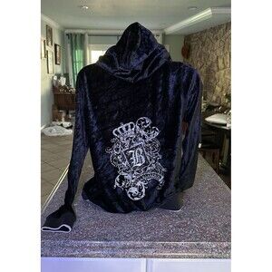 Y2K BCBG MaxAzria Black Velour beaded Track Jacket Sz M 2000s Mcbling