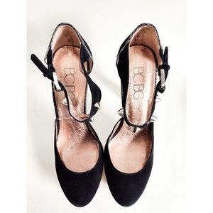 Y2K BCBG Paris Vtg Platform Suede Studded Ankle Strap 5" Block Heel Spikes Black