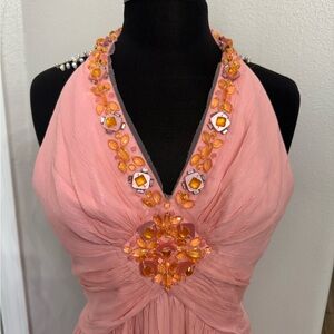 Y2K BCBGMAXAZRIA PINK ICE SILK BEADED PLEATED HALTER FORMAL GOWN SIZE 6 PROM