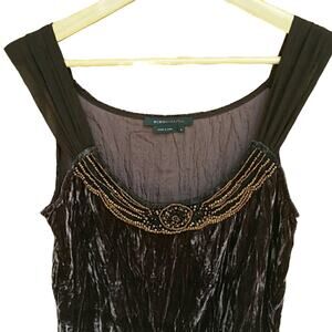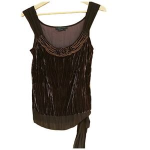 Y2K Vintage BCBGMaxAzria Crushed Velvet Top Sz M Brown Beaded Camisole Boho Summer Festival Tank Bohemian Gypsy Preppy Hippe Casual Cocktail Party