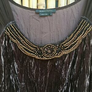 Y2K BCBGMaxAzria Crushed Velvet Top Sz M Brown Beaded Camisole Boho Festival VNT