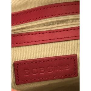 Vintage BCBGirls shoulder bag in a bold hot pink faux leather with oversized silver-tone buckle and contrast white stitching. Features a zip top closure, beige fabric lining, and interior zip pocket. Compact but roomy enough for essentials. Y2K era style with minimal signs of wear—clean interior and sturdy structure. Approx. 11” wide x 7” tall x 2.5” deep with a 9” strap drop.