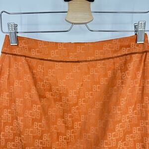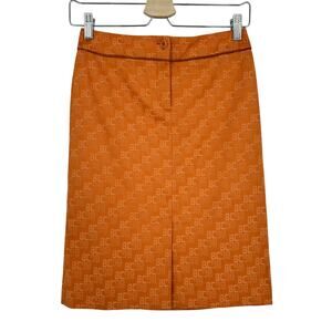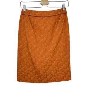 Y2K BCBGmaxazria Mini Pencil Skirt Size 0 Monogram pattern Burnt Orange 90s