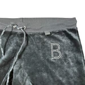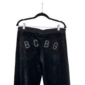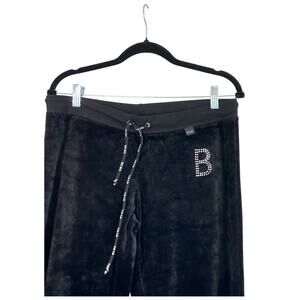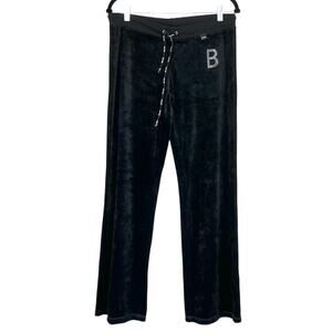 Y2K BCBGmaxazria Velour Rhinestone Logo Straight Leg Pants Black Size Large