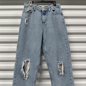 BDG jeans, Urban Outfitters denim, distressed mom jeans, ripped jeans, high-waisted denim, straight leg jeans, frayed hem jeans, vintage wash, Y2K jeans, casual streetwear