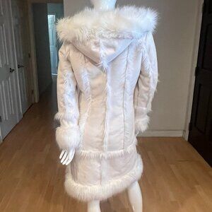 Y2K BEBE FAUX FUR MIDI HOODED COAT SIZE S SMALL WHITE