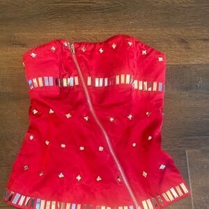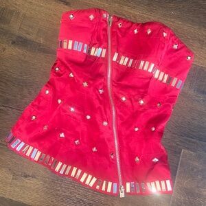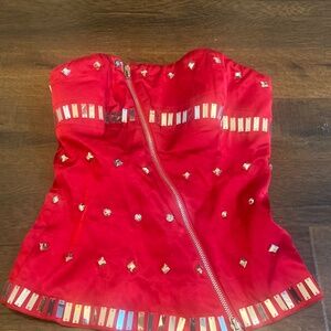 Y2K BEBE RED SATIN TRAPUNTO CORSET BUSTIER TUBE TOP SZ XXS NEW STUDDED
