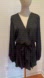 Y2K BLACK SILKY FLIRTY SKORT MINI ROMPER V-NECK & LONG BISHOP SLEEVES NORMCORE M