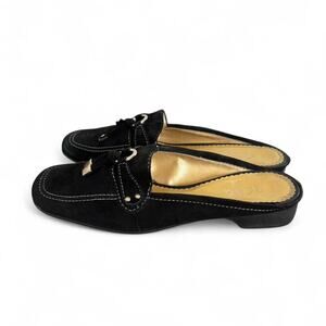 Y2K BLACK SUEDE TASSEL BCBG SLIDES MULES SIZE 7.