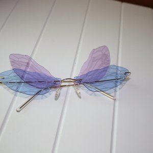 Y2K BLUE & PURPLE RIMLESS BUTTERFLY WING GLASSES