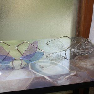 BLUE & PURPLE DRAGONFLY WING HOUSEFLY BUTTERFLY INSECT GLASSES FRAMELESS CLEAR LENS FASHION SUNGLASSES. (CANT BELIEVE I FOUND THESE OMG).