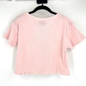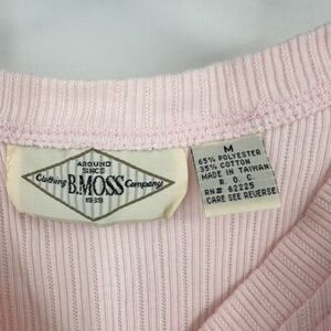 Y2K B. Moss Ribbed Henley Lettuce Trim Crop Shirt Pink & Blue Medium Baby Tee