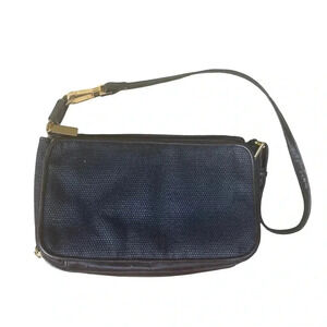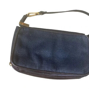 Y2K BUENO Navy Woven Shoulder Bag w/ Brown Ostrich-Embossed Trim