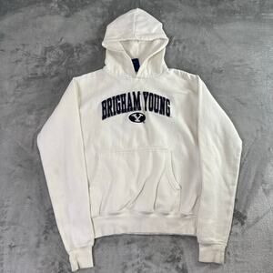 Y2K BYU Cougars white Hoodie Sweatshirt Old Varsity Brand Sz M NCAA STAINED
