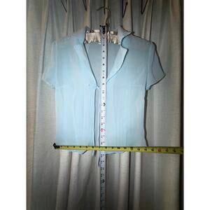 Y2K Baby Blue Sheer Chiffon Tie Front Top Short Sleeve Vintage 90s 00s Fairy S M