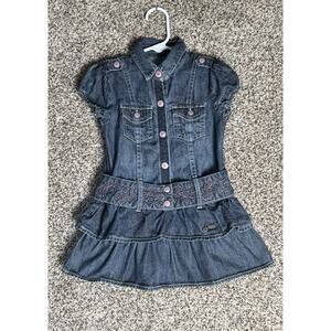 Y2K Baby Guess Denim Dress Girls Sz 24M Tiered Ruffle Puff Sleeve Belt Western