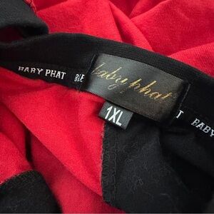 Y2K Baby Phat Black Red Split Splatter Graphic Tee Women’s Size Large Streetwear
