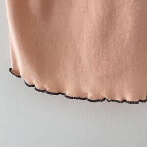 Y2K Baby Tee Lettuce Hem St. Maarten Top Peach Ruffle Edge Retro Travel Shirt M