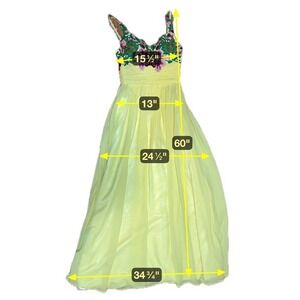 Keywords: y2k fashion, fairy dress, prom gown, babydoll silhouette, embroidered flowers, festival outfit, cottagecore, sunshine yellow, floral applique, spring formal, fairycore, ethereal style, whimsical fashion, dreamy aesthetic, bridal shower, garden party, princess dress, boho chic, maximalist, fantasy couture, rare, one of a kind