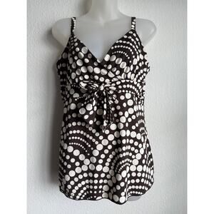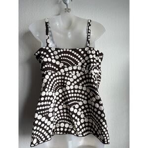 Y2K Babydoll Empire Waist Size L Festival Tank Top Brown Cream Polka Dot by INC