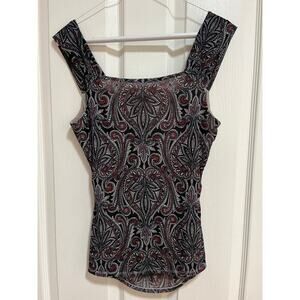 Y2K Babydoll Mesh Sheer Tank Top Paisley Slim Fitted Stretch Sz M