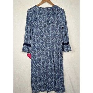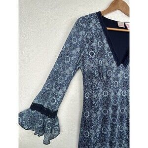 Y2K Babydoll Midi Dress NWT M/L Blue Sweetheart Neck Bell Sleeve Stretch 90s