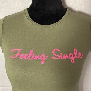 Y2K Babydoll Tee, Cap Sleeves, by Freedom "Feeling Single" Size S, Olive Green