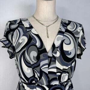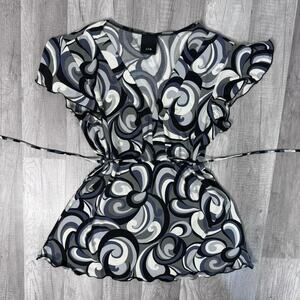 Y2K Babydoll Top Swirl Print V-Short Short Sleeves Waist Tie, has a mark as shown