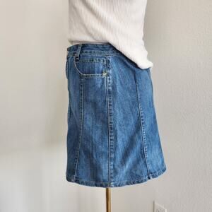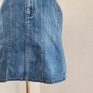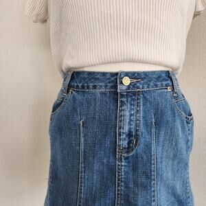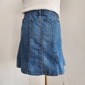 Y2K Baccini Blue Denim A-Line Mini Denim Skirt Seamed Panel High Waisted L