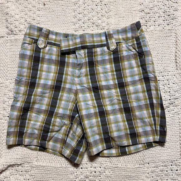 Y2K Banana Republic “Martin” Teal & Tan Plaid Shorts