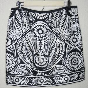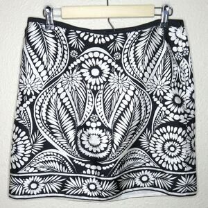 Y2K Banana Republic Silk Black and White Floral Short Skirt - Women's 4P