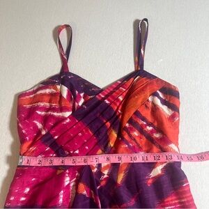 Y2K Banana Republic Silk Blend Summer Dress in Pink + Purple Palm Print, Size 6