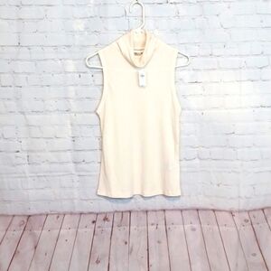 Y2K Banana Republic Woman's Soft Cream Sleeveless Turtle Neck Top NWT M