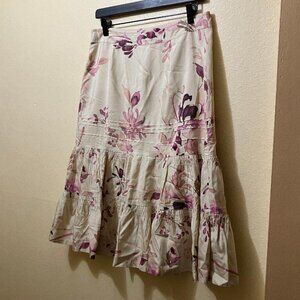Y2K Banana Republic Women's Tiered Floral Pattern Silk Flare Midi Skirt Size 4