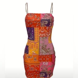 Y2K Bandana Patchwork Mini Dress β Size Large β Trendy & Bold! ππ₯