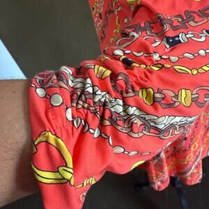 Y2K Barbara Gerwit XL Chain Print Long Sleeve Midi Dress Orange Retro Vintage