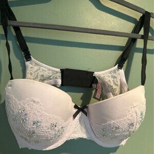 Y2K Barbiecore Pale Pink Sequin Balconet Bra 34D Lingerie Glam Sparkly Romantic