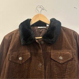 Y2K Barn Trucker Brown Corduroy Jacket with Black Faux Fur Collar Size XL