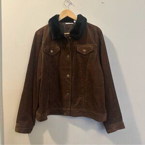 Y2K Barn Trucker Brown Corduroy Jacket with Black Faux Fur Collar Size XL