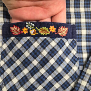 Charming fall-themed embroidery on the collar and pocket