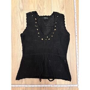 Express Black Crochet Shell Tank with Beaded Embellishments – beachy boho meets 2000s throwback