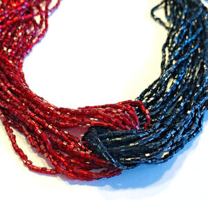 Vintage Y2K choker necklace - glamorous red & black seed beads on this multistrand piece knotted at the front for a dramatic statement. No hallmarks - nice quality fashion jewelry with fine workmanship. The tiny beads on this piece have great sparkle & shine and the thick ropes of beading are bold and eye-catching. In excellent condition - no damage or flaws - just stunning!