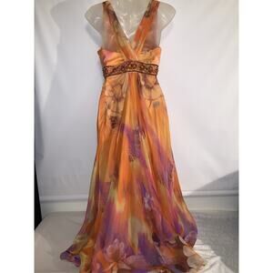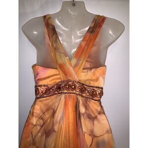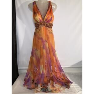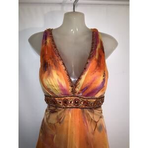 Y2K Beaded Sequins Floral Dress Mermaid Multicolor 100% Silk Size XS Wedding
