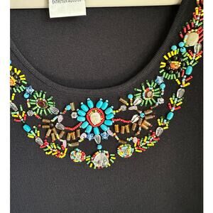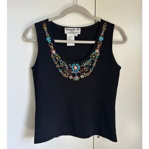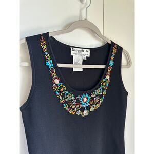 Y2K Beaded Tank Top KNit Size MPetite Black Festival Boho Hippie Western Wear